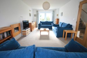 Come on in through the welcoming blue door and drop your bags in the bright hallway, before exploring the rest of the spacious and light filled ground floor. A warm and cosy lounge leads off one way, with plenty of sofa space for the whole family to chillout on together. Opposite is a large open plan kitchen dining room, with lots of extra seating so you can keep the cook company!! The main dining table is situated in the glazed sunroom, which leads out on to the enclosed patio and garden, ideal for summer BBQ’s or a run around with the dog.